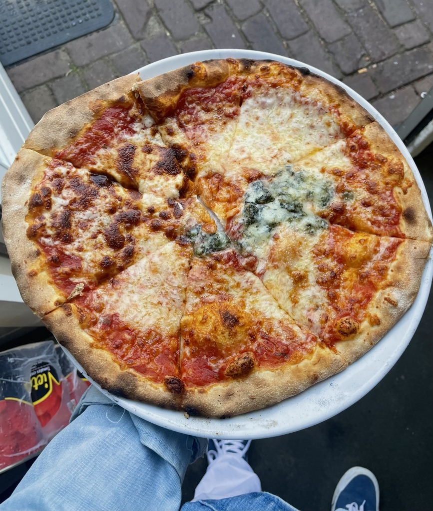 Pizza met Provola, Pecorino, Belpaese en Gorgonzola