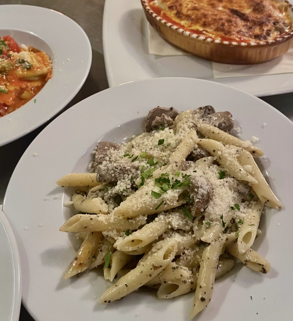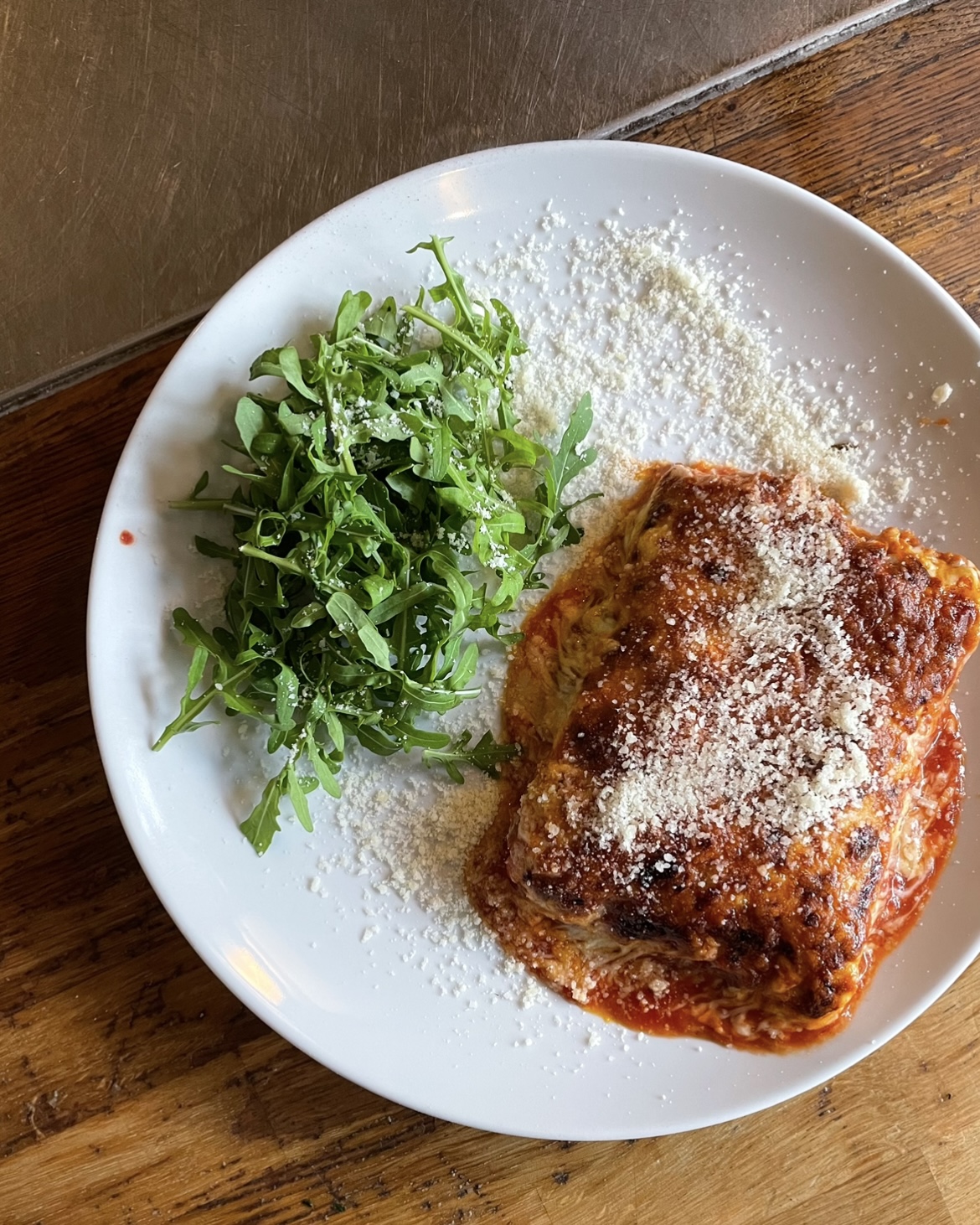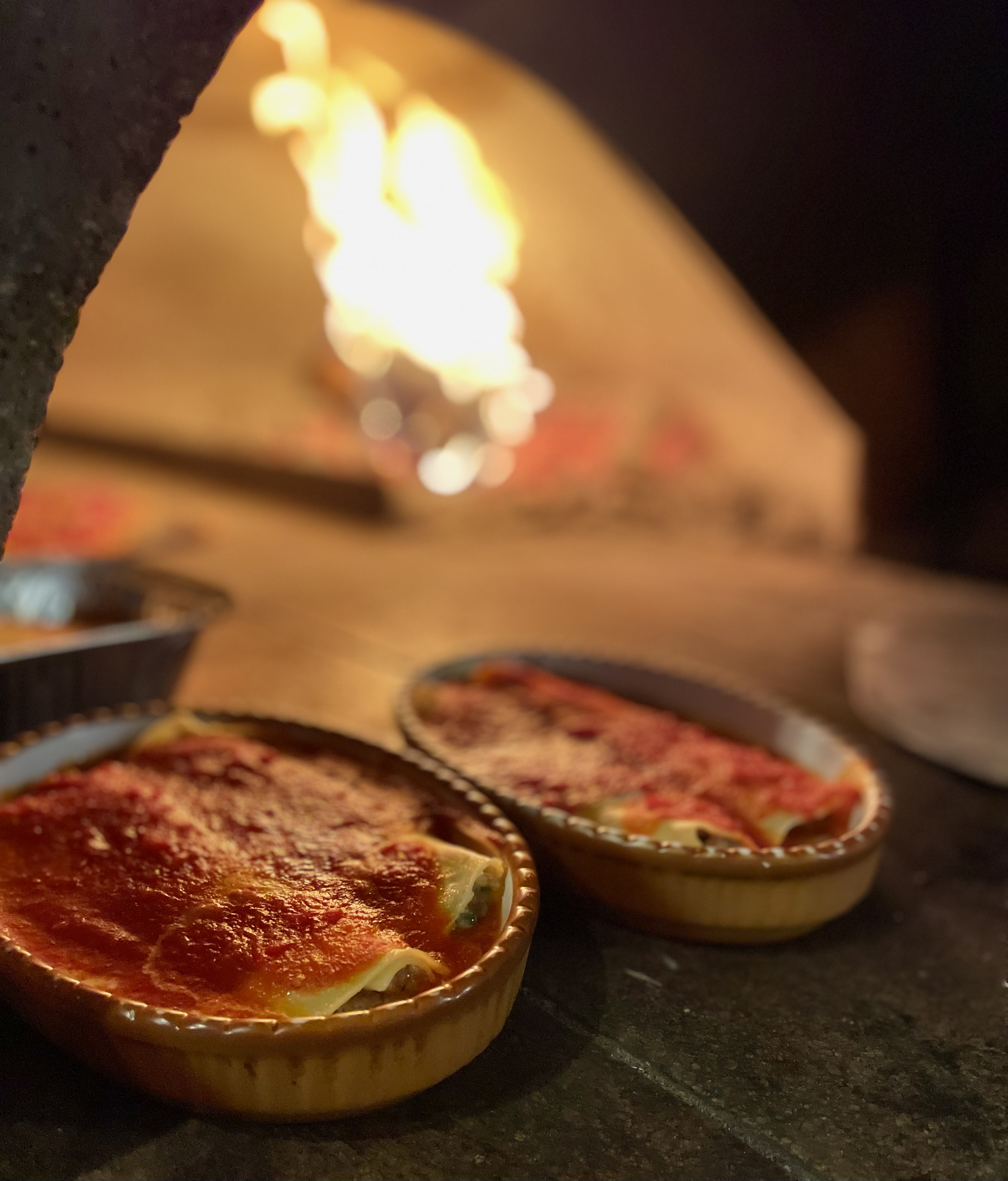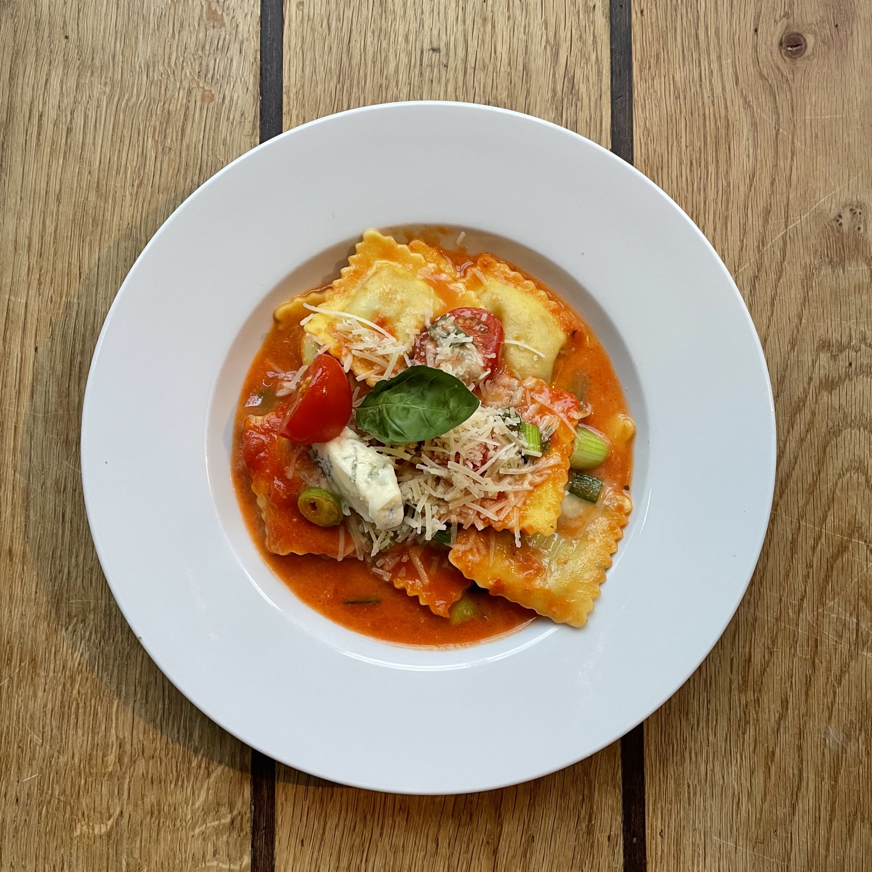 Ravioli met ricotta, spinazie, tomatensaus en Gorgonzola