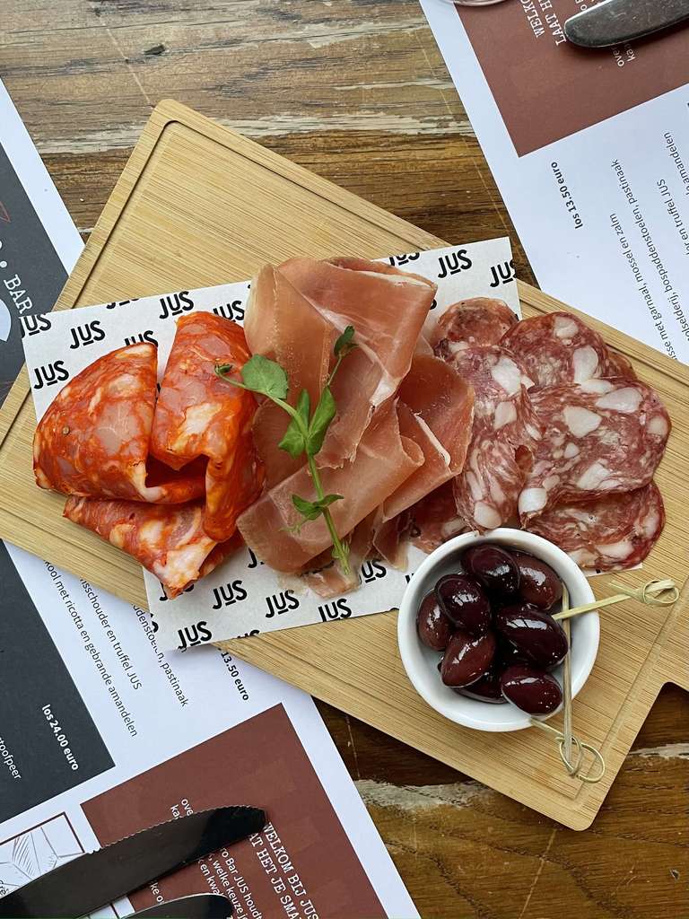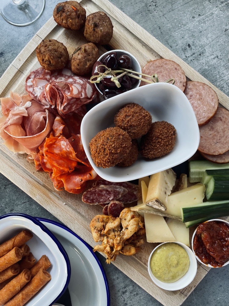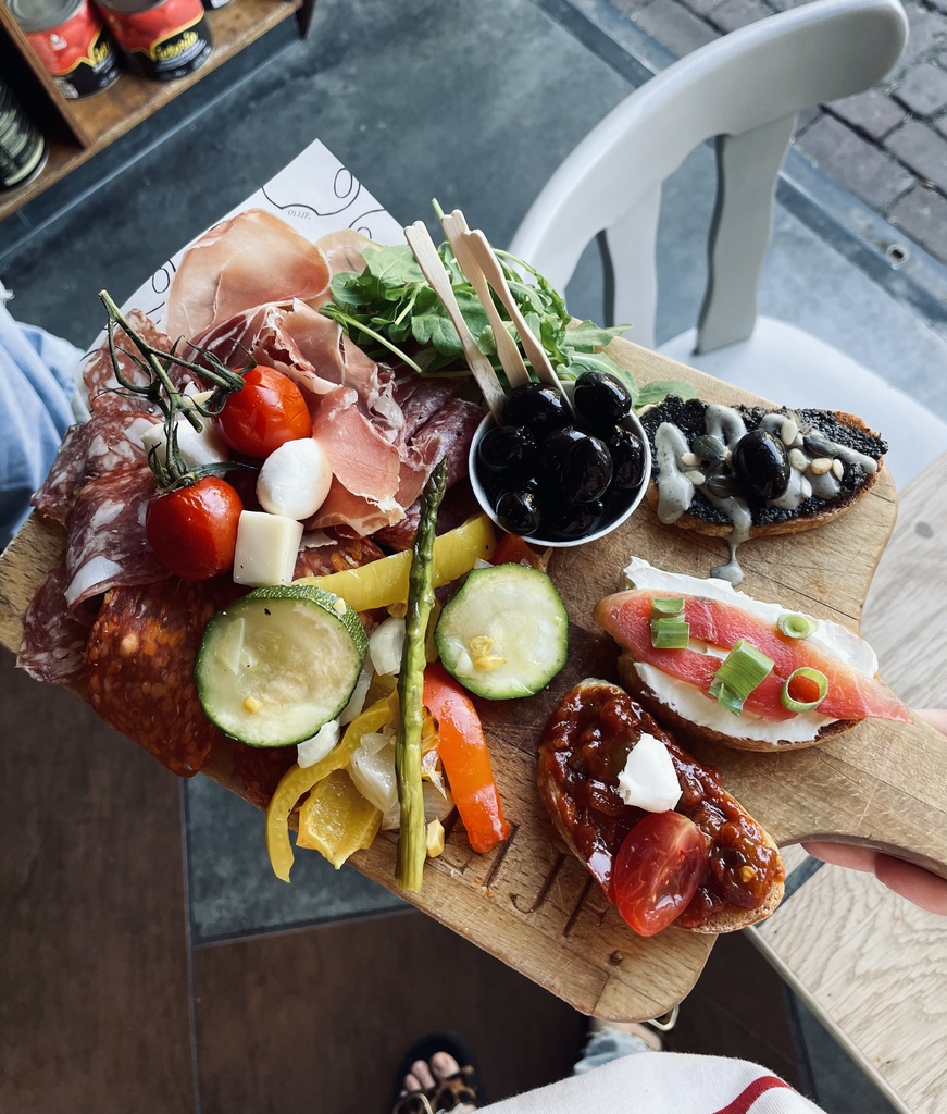 Italiaanse lekkernijen! Vier soorten hammetjes, gegrilde groenten, verschillende bruschetta's, tomaatjes met mozzarella, olijven, Pecorino en Taleggio kaas! Voldoende voor 2 à 3 personen.